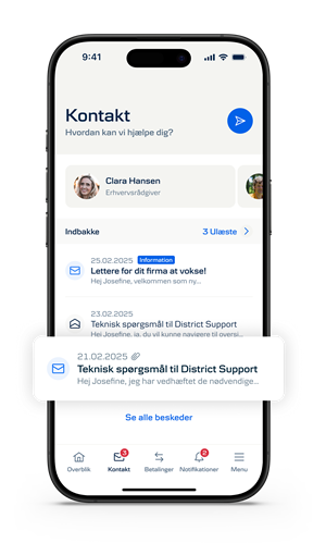 Skriv til os direkte i appen og få hjælp. Du kan også booke et møde med en af vores erhvervsrådgivere.
