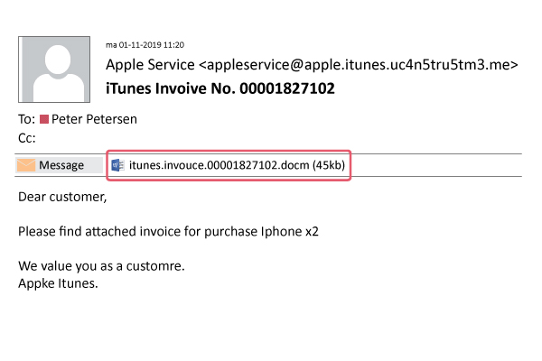 Der kan også være en vedhæftet fil i mailen. Ofte er det et word-, excel- eller et pdf-dokument, som installerer malware på computeren, når du åbner filen.