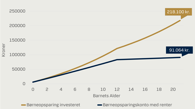 Her er to regneeksempler, der viser, hvorfor investering af børneopsparingen kan være en god idé: