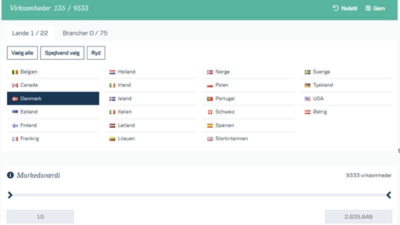 Avancerede værktøjer til at filtrere aktier baseret på kriterier som markedsværdi, sektor, kursudvikling, udbytte og nøgletal som P/E og P/B. Dette gør det muligt at finde aktier, der passer til din individuelle investeringsstrategi.