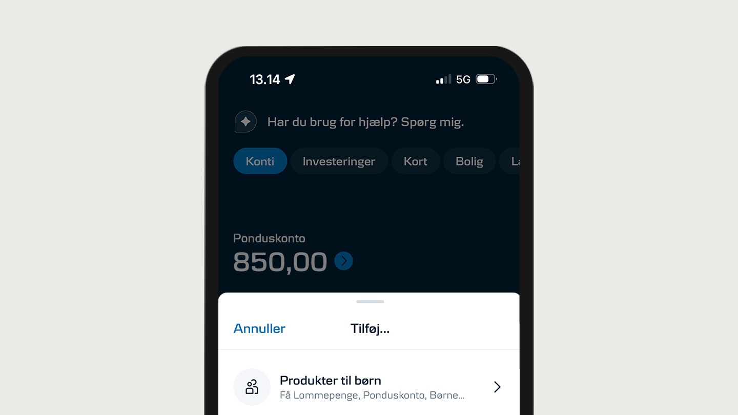 Bestil Ponduskonto og få et legetøjskort til dit barn. Kontoen kan bruges til lommepenge og små pengegaver, og kortet kan bruges til leg og læring.