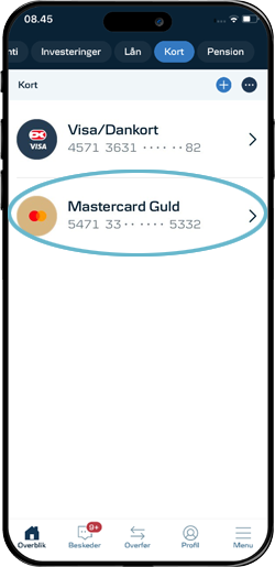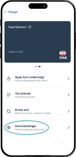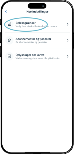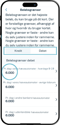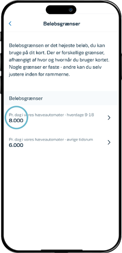 I mobilbanken kan du selv tilpasse beløbsgrænsen for, hvor meget du kan hæve på dit kort i pengeautomater.