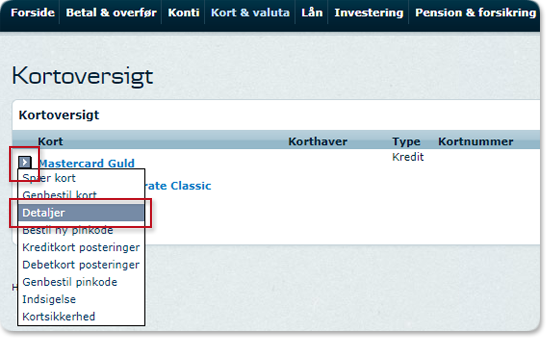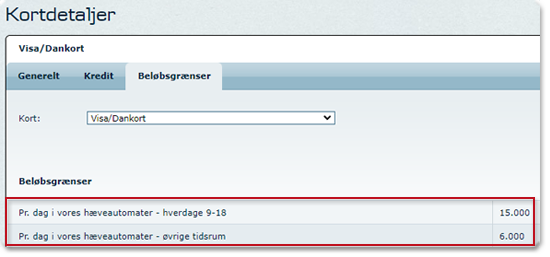 Beløbsgrænser for kort