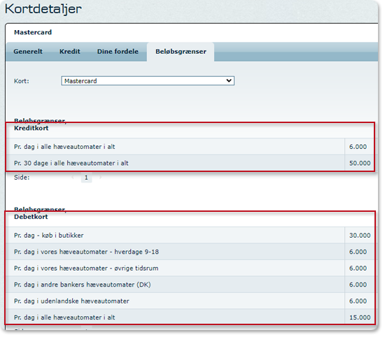 Vær opmærksom på, at der er forskel på hæve- og forbrugsgrænserne alt efter, hvilket kort du har og hvor og hvornår du bruger det.